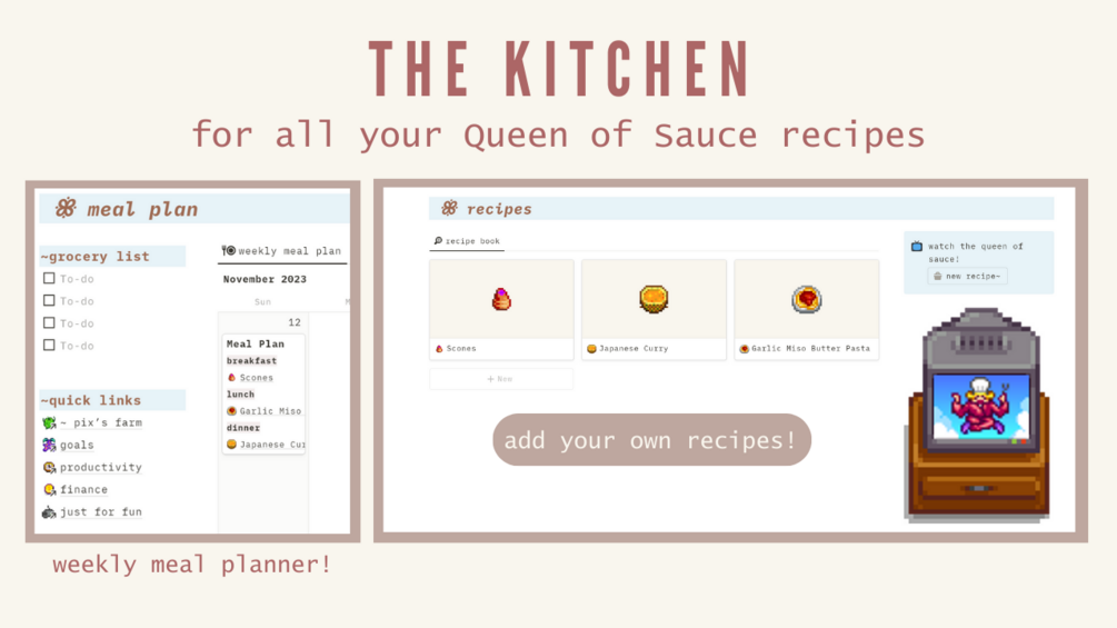 Transform your Notion workspace into a Stardew Valley themed haven, thoughtfully designed to keep yourself organised and cultivate a life that is both productive and fulfilling while keeping the iconic game close to you!